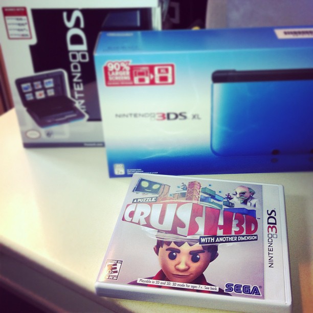 I've sat out on the DS, mainly because I was just getting into the GBA library at the time. But when the 3DS was announced my ears perked up. Like the GBA SP, the 3DS looked to be a great option for those who sat out on the previous generation of Nintendo handhelds. Instead of buying a DS, I could just get a 3DS and cover both bases. Coupled with a GBA SP, a gamer could enjoy the entire Nintendo portable library with only two devices. Unforuntaly, I didn't have the money for a 3DS for quite a while, and once I did, the 3DS XL was announced. So I waited, and finally got a hold of one on the release date this past Sunday. Being a SEGA fan, I had to pick up SEGA titles first. So Crush 3D and Sonic Generations are the first games in my 3DS library, followed by Elite Beat Agents and Super Street Fighter IV: 3D Edition.